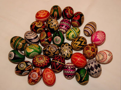 Tradycyjne wzory na jajkach były czarno-białe, farbowane w korze młodej olchy i opiłkach żelaza, nazywano je "czarnymi perłami".